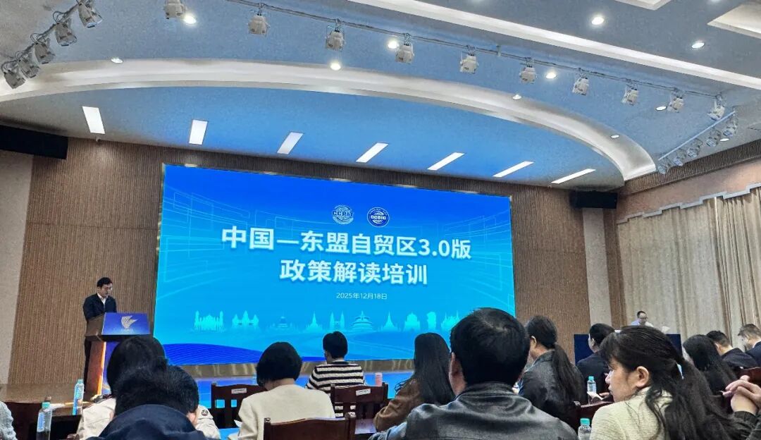 2025年12月18日上午,由中國國際貿(mào)易促進(jìn)委員會廣西分會、廣西國際商會主辦的“中國—東盟自貿(mào)區(qū)3.0版生效實施政策解讀培訓(xùn)”在南寧舉行。廣西天緣綠科技集團(tuán)積極組織相關(guān)人員參加本次培訓(xùn),主動對接高水平開放政策,著力提升企業(yè)把握區(qū)域發(fā)展機(jī)遇的能力。