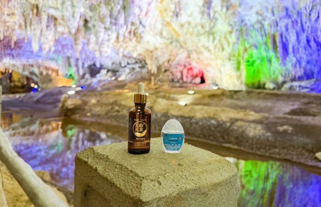 在馬山金倫洞內(nèi),鐘乳石在燈光下流轉(zhuǎn)著七彩光暈,仿佛在訴說著億萬年的自然奧秘。天緣綠集團兩款明星產(chǎn)品——天綠元素與沁潤明眸舒緩滋養(yǎng)護眼液,被輕放在溶洞的天然石臺上。這一刻,科技與自然完成了一場跨越時空的對話。