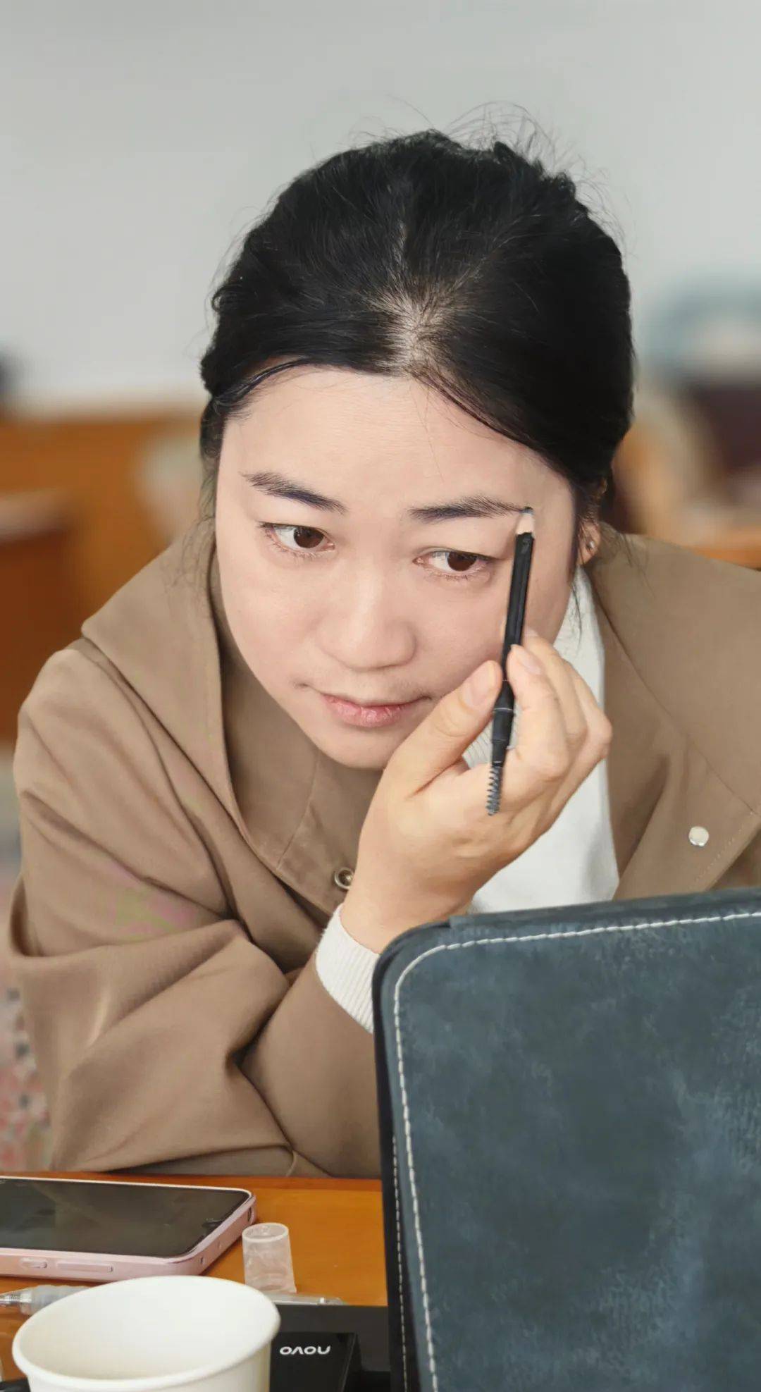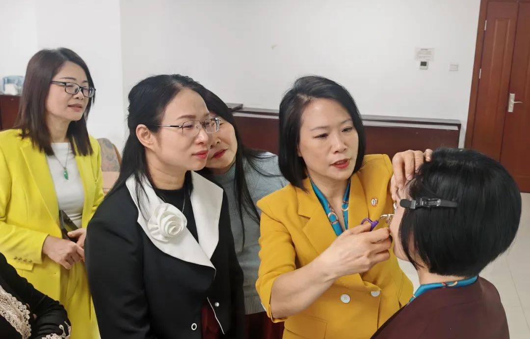 在彩妝技巧和方法環(huán)節(jié),葉老師重點(diǎn)分享了眼妝的畫法。她指出,眼影的暈染應(yīng)遵循“先淺后深”的原則,先用淺色眼影打底,再用深色眼影在眼尾處暈染,以增強(qiáng)眼部立體感。對(duì)于新手而言,使用工具輔助畫眼線可以避免手抖問(wèn)題,這一技巧讓參訓(xùn)職工受益匪淺。